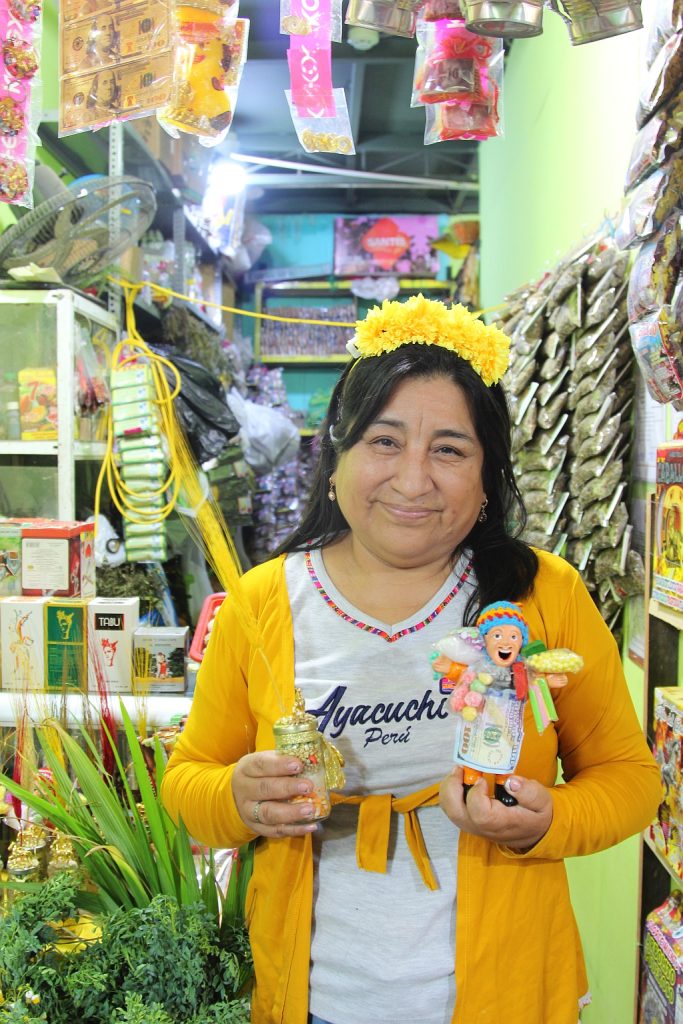 A unos pasos, en el puesto 38A, María Gladys Zurita lidera la tienda «El Sol». Si José es el maestro de las hierbas, María es la experta en la simbología de la prosperidad. Su puesto es un festival de cábalas: desde velas con forma de caballo y llaveros de la suerte hasta los curiosos ‘ekekos’ para la abundancia.