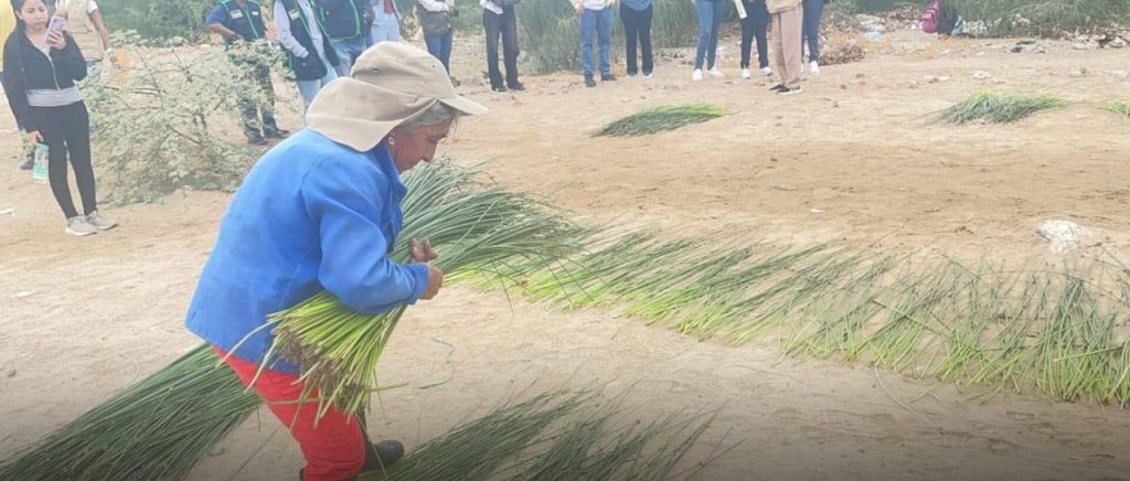 Eudocia Chunga Ruiz, una de las cosechadoras, lo explica con serenidad: “Cuando el junco está verde y finito, no se puede cortar. Esperamos a que madure, lo limpiamos, lo extendemos al sol y luego hacemos los haces.” A su lado, Felicita Zapata, con voz cansada, agrega: “Cuando ya no tiene semilla, está maduro. Lo segamos, lo tendemos ahí mismo y lo dejamos secar. Cosechamos dos veces al año.”