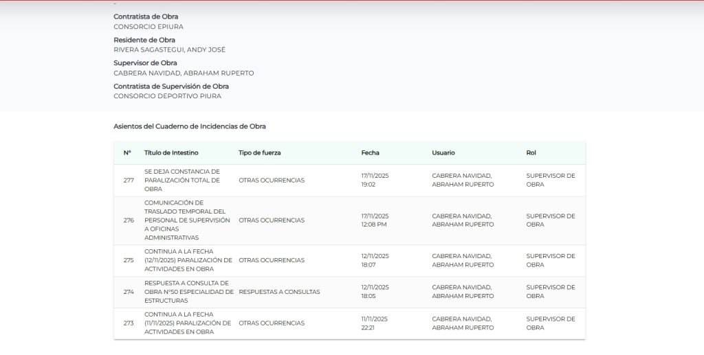 Según el informe al que accedió Norte Sostenible, firmado por el jefe de supervisión Abraham Cabrera Navidad, se señala deficiencias en el expediente técnico, que deben ser corregida mediante pronunciamiento formal del proyectista y modificada contractualmente por la entidad. Por ese motivo no se puede continuar con los trabajos y pone en riesgo el cumplimiento de los principios de la Ley de Contrataciones del Estado (Ley N° 30225 y su Reglamento D.S. N.º 344-2018-EF).