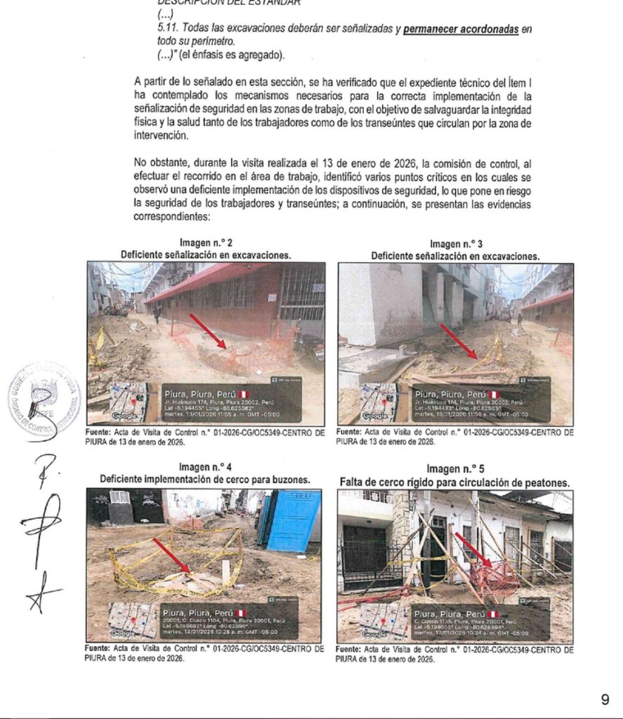 Esa falta de seguridad contraviene directamente la Norma G.050 de Seguridad durante la Construcción y los propios estándares del Plan de Seguridad y Salud en el Trabajo del proyecto. La Contraloría fue enfática: la ausencia de dispositivos de seguridad peatonales y vehiculares es una falta contractual que amerita penalidades de hasta 0.3 UIT por cada día de incumplimiento.