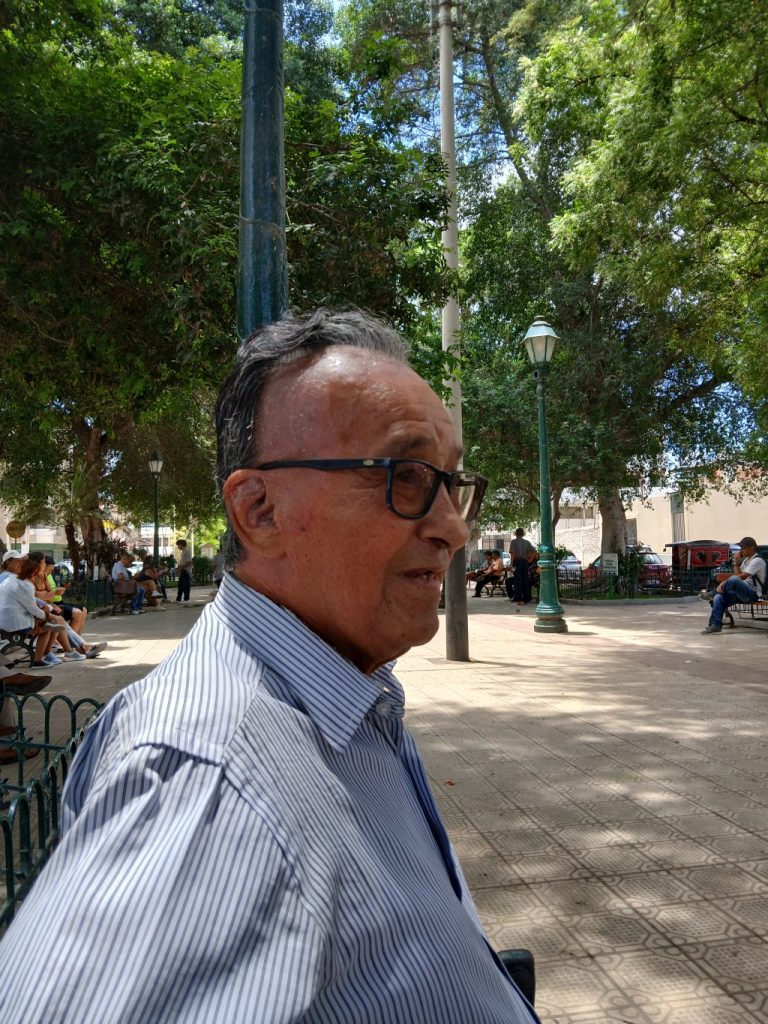 José Villalta Farfán tampoco entiende por qué arrasarán con la mitad del parque. Tiene 73 años, es moreno y, desde que tiene memoria, ha pasado su vida en esa plaza. Desde las nueve de la mañana sale de su casa, en Ignacio Merino, y deja caer su presencia en una de las bancas frente al edificio de la fiscalía. Alguna vez fue un abogado. Ahora ꟷdiceꟷ solo disfruta del tiempo.